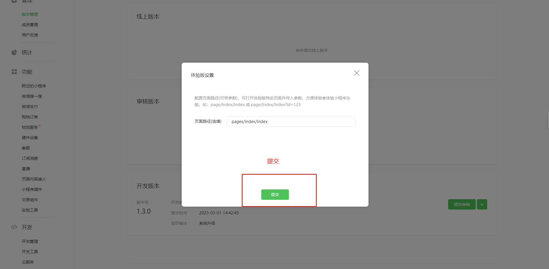 7、小程序后台-版本管理-提交刚发布的开发版本为体验版